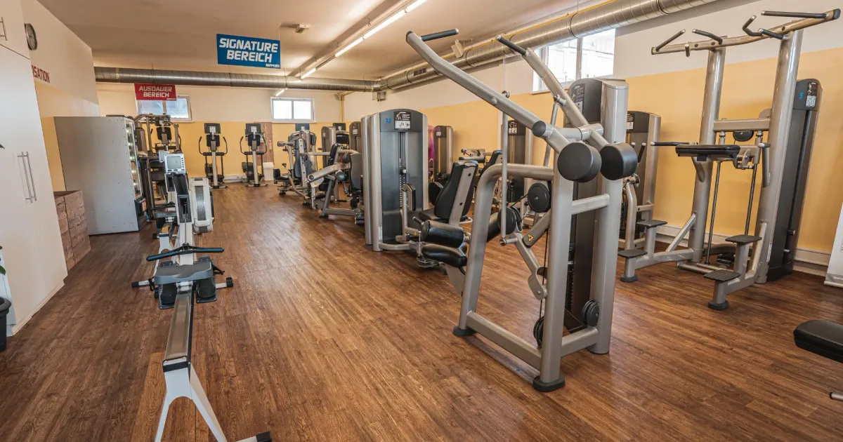 Zusätzlich zu Kraft- & Cardiogeräten erwarten dich an diesem Standort auch ein Vibrogym, ein Solarium und eine Elektrolytgetränkebar.